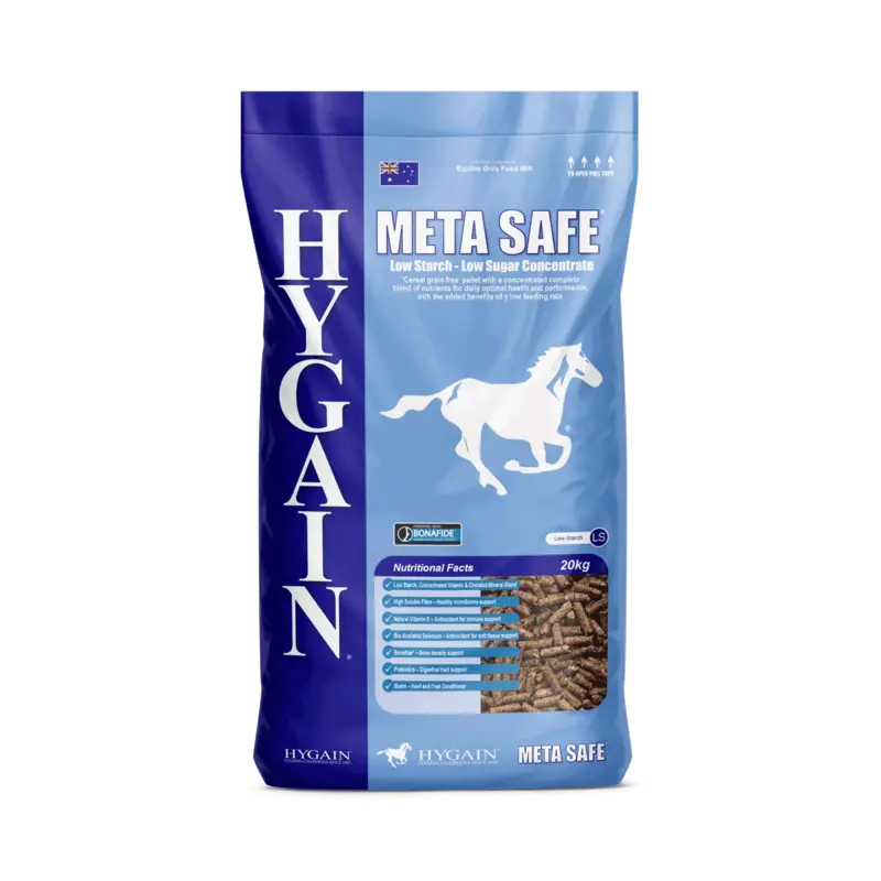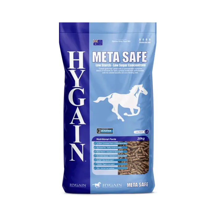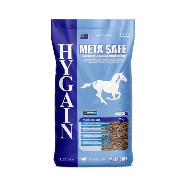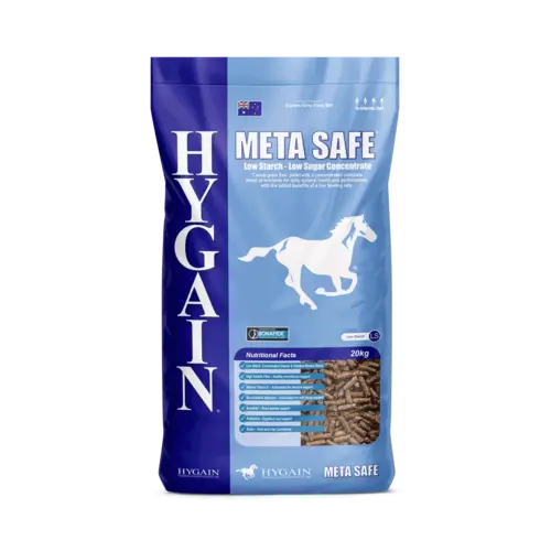 Charlton, QLDMETA SAFE® is a grain free concentrate pellet containing a complete blend of nutrients at a low feeding rate. The most advanced, scientifically formulated Low GI concentrate to support horses on restricted diets or that suffer from metabolic disorders.
