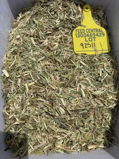 Barley Hay baled on the 15th of November 2025. 6 string 8x4x3 bales. Average bale weight 620kg. Some bales are still stacked outside, waiting to be put into shed. Those bales outside do have some staining on stems on exterior of bale. Cooler curing conditions. Cut with a mower conditioner. Bales already in shed have the odd staining on stems. Average moisture of 11.1%. No high readings. Lowest was 8.8% and highest was 14.1%. Very soft in texture and excellent leaf and head retention. There is some wheat in this barley hay. Nice green colour, not too much sunbleaching on the inside of bales. Sweet and fresh hay aroma. Good shed and good access to the road for trucks.