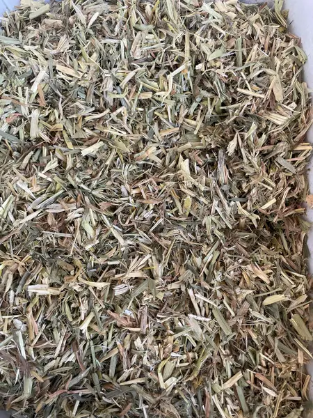 Barley hay with black oats evident. Cut with mower conditioner at milky dough stage. Cured over 40 days in cool conditions with some rain. Rain has stained some of the leaf and stems with small amount of internal blackspot. In 8x4x3 bales with 8 strings.