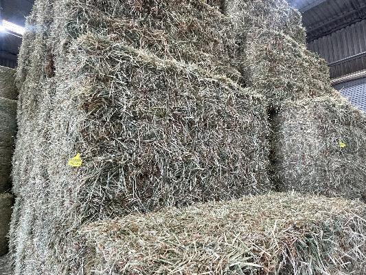 Lovely line of sweet Moby Barley hay, cut at heads emerged with some milky dough noted and perfect baling conditions. Average moisture of 16.5% This hay has good colour and very nice aroma. Stored in a good 4 sided shed on concrete flooring.