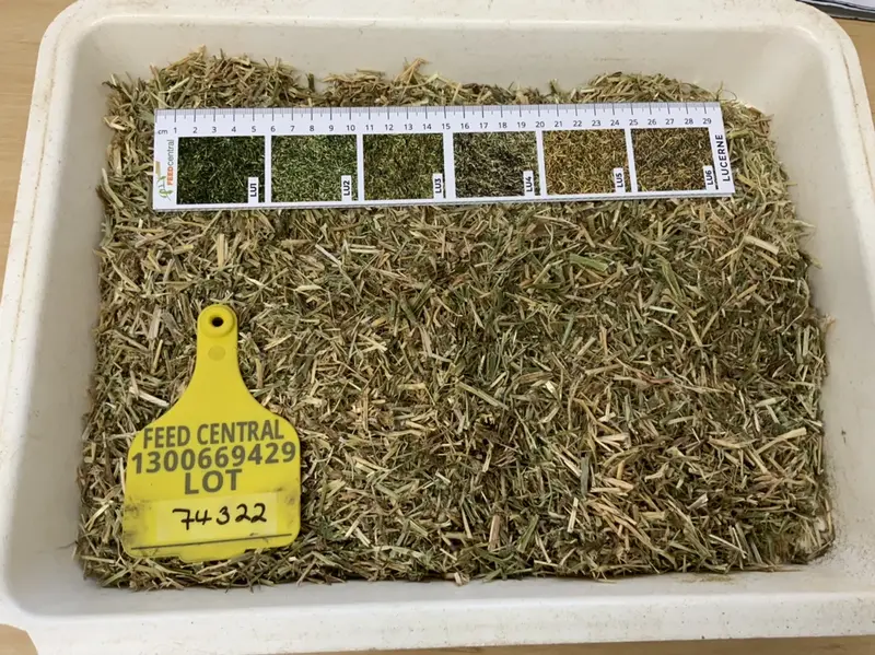 2022 1st cut Lucerne Hay baled over a 8 day period in fine, mild conditions. Cut with a mower conditioner at the early flowering stage and raked once it presents a green colour with approximately 50% of sun bleached colour throughout. The product has a very tight moisture range of 9.5 to 13.2%. New photo updated 25/1/24