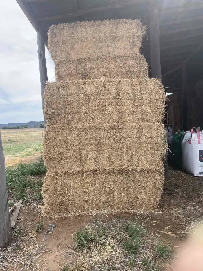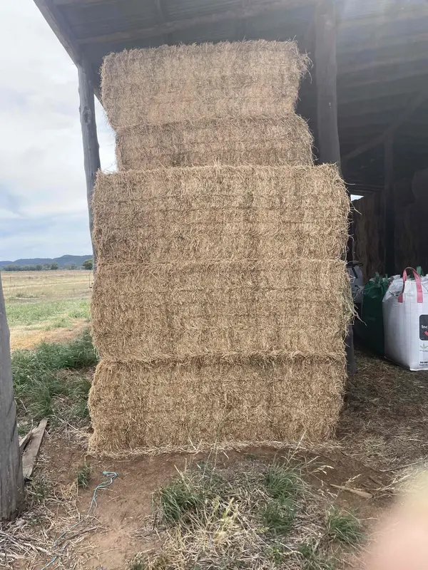 Jemalong, NSW2nd cut dryland lucerne hay in 8x4x3 bales stacked in an open shed. Some variability in moisture levels with an average of 16.9%. Cut at mid maturity with mower conditioner. Cured in hot dry conditions. 1 in 5 bales are bottom bales and have a small amount of dirt / signs of moisture due to being stacked in the outside bay of an open shed which is reflected in the discounted price.