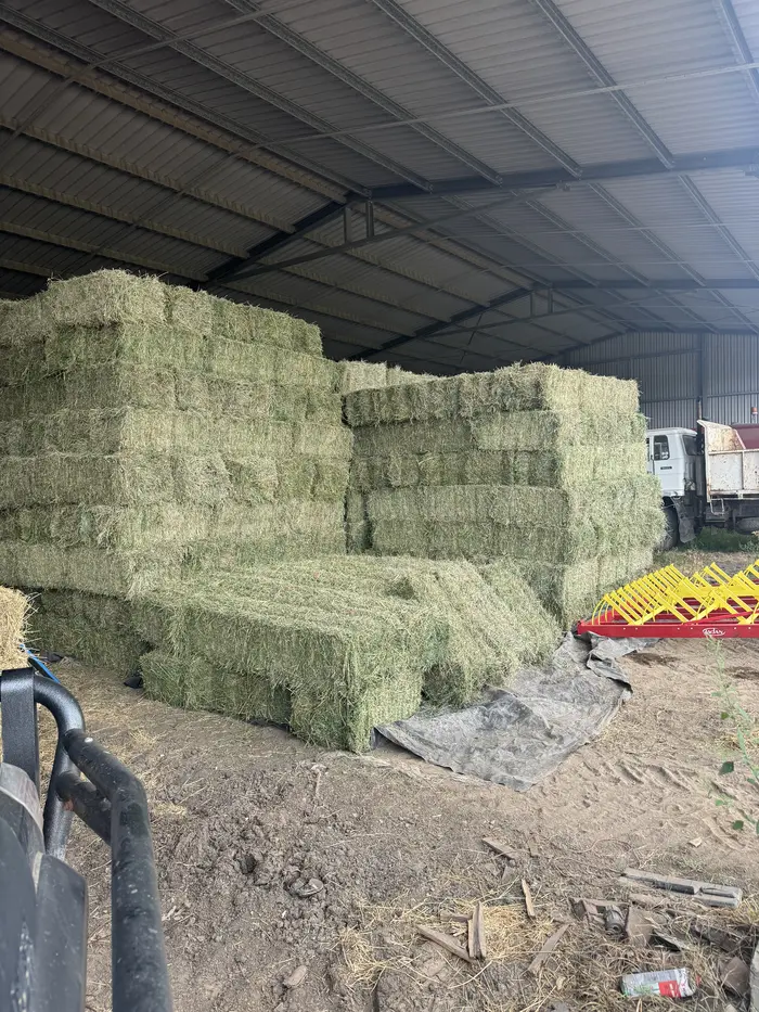 Small Lucerne Bales Avg Weight 20.0kg . Fine stem, good leaf and aroma. 4th cut from irrigation stand. 4500 bales available now.
