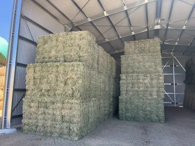 Prime lucerne hay in bales baron packs. Good soft lucerne with good leaf retention and colour. Consistent bale lengths presents well. Average moisture of 13.4%