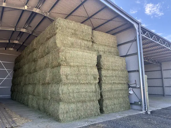 2nd cut lucurne hay in 8x4x3 bales. Good colour. Stacked in the shed on a concrete floor.