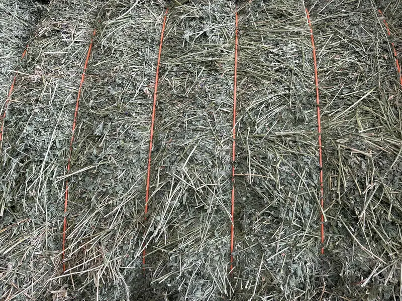 Nice line of leafy Second Cut Lucerne Hay. Cut pre to early flowering. Average moisture reading of 14.9%. Stored in a floor lined shed.