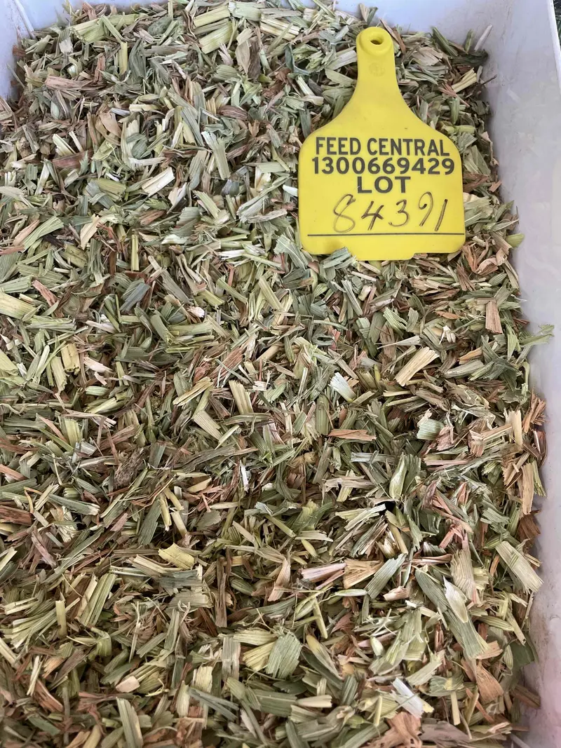 Oaten hay grown in good of season. Thick stems. Baled into 8x4x3 bales in hot dry conditions with curing over 9 days and raked once. Some variability in moisture readings with average of 17.5%. Good leaf and stem colour. Stacked on gravel under hay caps in single rows. All weather road train access