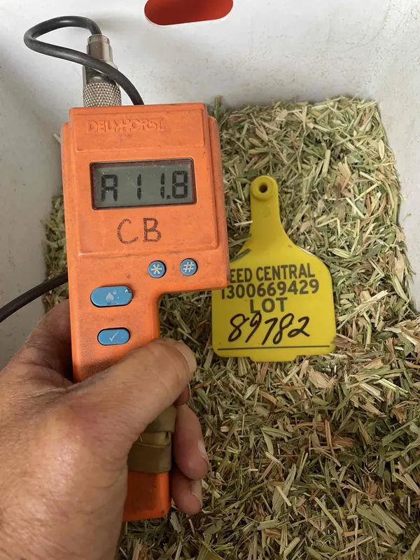 Irrigated oaten hay in heavy 8x4x3 bales. Cut at flowering with mower conditioner and cured in good conditions with 1 raking. Short stems with good leaf colour and soft texture. Average moisture of 11.8%