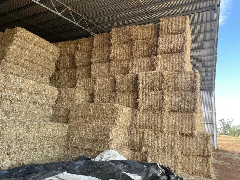Oaten hay inn8x4x3 bales cut at milky dough stage. Cool conditions at curing with small amount of rain early curing. Well conditioned with soft texture. Average moisture of11.8%.