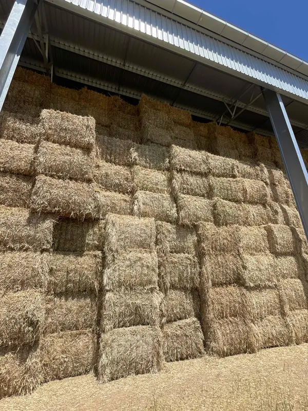 Narromine, NSWOaten rye grass hay in sound 8 string 8x4x3 bales. Stacked in open shed with good access. Cut with mower conditioner and cured in good conditions. Average moisture of 13.3%. Normal to soft in texture. Percentage of oats to rye blend variable.