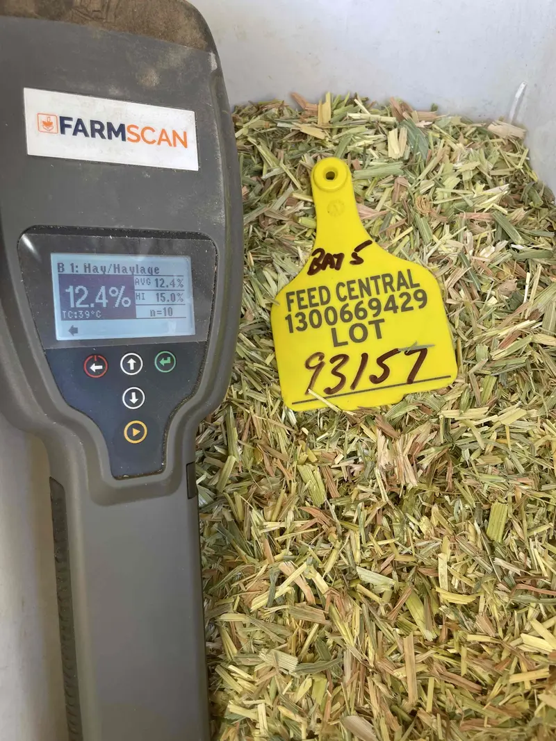 Oaten hay in 8x4x3 bales stacked in an open shed well protected. Cured in cool condition with light rain which has only done minor damage to quality. Average moisture of 12.4%