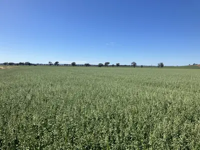 Springdale, NSWSmall squares of beautiful green leafy hay. Mower conditioned 15/10/25 one small rain event whilst in windrow but has not affected colour or quality. Baled on 31/10/25 under ideal conditions, average 12 to 14 biscuits per bale. Minimum purchase of 25 bales.