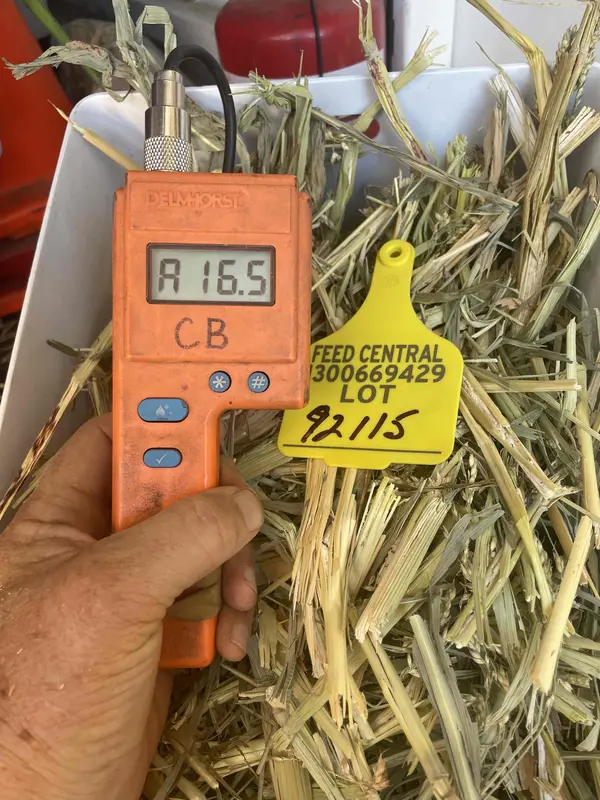 Irrigated SSS sorghum hay 1st cut. Baled into 8x4x3 bales. Cut with mower conditioner at flowering / milky dough stage and cured in good conditions over 7 days. Stacked in shed with all weather access. Has good leaf content and colour with average moisture of 16.5%