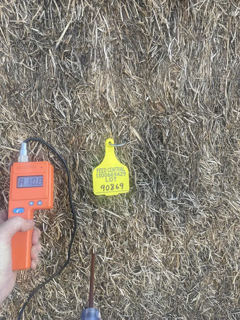 Morava vetch stored in good secure shed on plastic. A number of light rain events have darkened this hay but still has some green stems and retains a fair aroma Silac was used at baling. Fairly dry with an average of 10.8 moisture