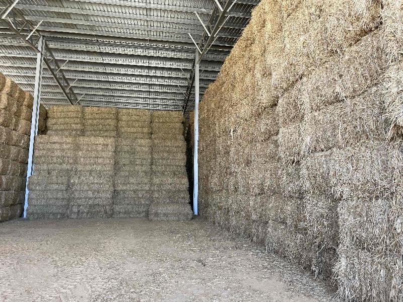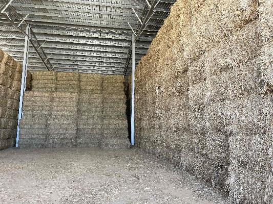 Oakey, QLDWheaten hay in 8 string 8x4x3 bales stacked 5 high in closed shed with all weather access. Hay cut with mower conditioner at full flower with possible milky dough seed. Cured in good conditions with over 50% green leaf and stems. Average moisture of 14.4%