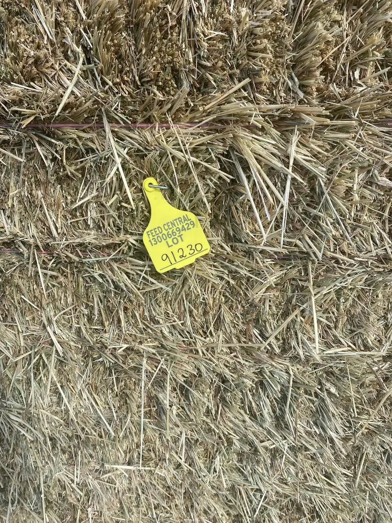 Large square Oaten Hay, 8x4x3, high density 600kg bales. Cut with mower conditioner and raked once. Average moisture 12.8, good colour, leaf rention and texture.