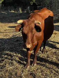 Brown Cow is a Simential cow with Clay Gully genetics. Approx 3 years old and now pregnant with her second calf to the blonde beer bull. brown cow is PTIC 5-7 months pregnant.