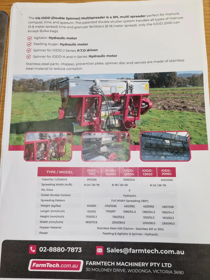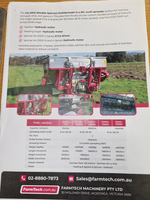Iris IODD (Double Spinner) is a 3PL multispreader good for manure, compost, lime and granular. In good working order and condition. We have outgrown the size of the spreader and looking to upgrade. Very good for small to medium holdings looking to spread lime.