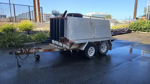 Clovelly Park, SATreg Tandem tool trailer, was built & designed for our requirements fittings one site, hand tools other side & front rack for tools.