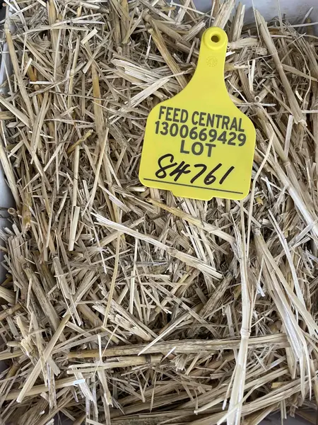 Windrowed chopped wheaten straw in 8x4x3 bales with 8 strings, stacked in a secure shed with average moisture of 10.8%. Some weather damage while crop was standing after grain harvest. Small amount of dust on exterior of bales. Knives in baler with 8mm stem length.