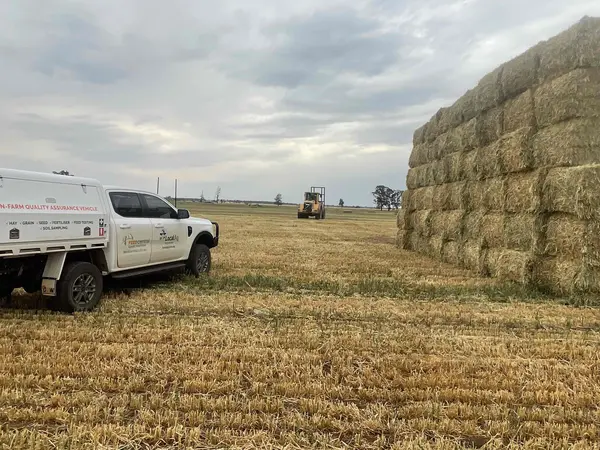 Oaten hay in 6 and 8 string bales with average weight of 750kg. Solid well made bales with average moisture of 15.4%. Cut with mower conditioner and cured over 3 weeks in good conditions. Short fine stems with soft texture.