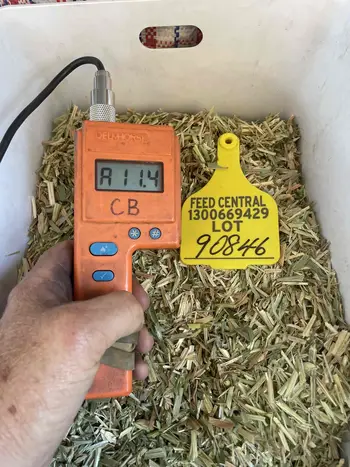 2024 Sudan grass hay. Good colour. Good sound 8 string bales stacked outside under haycaps on formed up pad to drain water away. Average Moisture 11.9%