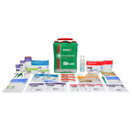 The Defender 3 Series Softpack First Aid Kit comes fully stocked and provides quick access through a unique center slit pocket without the need of unpacking each individual product. Size - 13 x 9 x 19.5cm Each kit includes: AEROPLAST Plastic Plasters 72 mm x 19 mm (25) AEROFORM Conforming Bandage 5 cm x 4 m (1) AEROFORM Conforming Bandage 7.5 cm x 4 m (1) AEROFORM Heavyweight Conforming Bandage 10 cm x 4 m (1) AEROBAND Calico Triangular Bandage 110 cm x 110 cm x 155 cm (2) AEROPAD Non-Adherent Dressing 10 cm x 10 cm (2) AEROPAD Non-Adherent Eye Pad 5.5 cm x 7.7 cm (1) AEROWOUND Wound Dressing #13 Small BPC (1) AEROWOUND Wound Dressing #14 Medium BPC (1) AEROSWAB Gauze Swabs 7.5 cm x 7.5 cm 3’s (3) AEROTAPE Microporous Paper Tape 2.5 cm x 5 m (1) AEROBURN Burn Gel Sachet 3.5 g (1) AEROBURN Burn Gel Dressing 10 cm x 10 cm (1) AEROWASH Eye Wash Ampoule 15 mL (2) AEROWIPE Cleansing Wipe Alcohol Free (3) AEROSHIELD CPR Face Shield Disposable (1) AEROGLOVE Nitrile Examination Gloves Pair (2) AERORESCUE Thermal Emergency Blanket 140 cm x 210 cm (1) AEROSUPPLIES Notebook & Pen (1) AEROINSTRUMENT Scissors 13 cm (1) AEROINSTRUMENT Forceps 11 cm (1) AEROSUPPLIES Safety Pins Medium (3) AEROGUIDE First Aid Leaflet (1)
