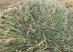 Lucerne cut with Mower conditioner and baled in ideal conditions. Grass present with amounts variable between bales. Average moisture of 11.4%. Normal in texture with small amount of water marking. Has retained a light green colour.