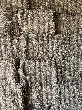 Line of Forage Sorghum Hay in 6 string 8x4x3 bales, with more than 30% weeds across the bales. Varying maturity throughout crop when cut, cured for 7 days in ideal conditions. Grey to brown in colour, stalky sample with minimal leaf retention. Stacked in a solid 3 - sided shed with floor lined with plastic.