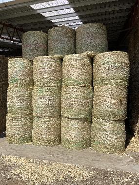 Line of Forage Sorghum Hay in 6 string 8x4x3 bales, with more than 30% weeds across the bales. Varying maturity throughout crop when cut, cured for 7 days in ideal conditions. Grey to brown in colour, stalky sample with minimal leaf retention. Stacked in a solid 3 - sided shed with floor lined with plastic.