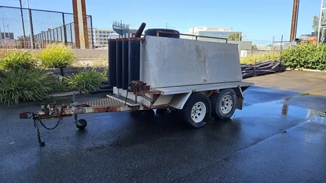 Treg Tandem tool trailer, was built & designed for our requirements fittings one site, hand tools other side & front rack for tools.
