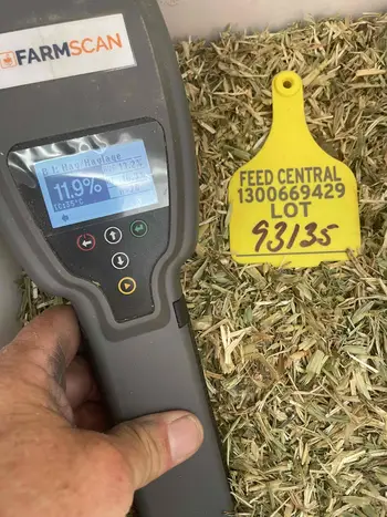 Oaten Rye hay in 8x4x3 bales. Cut with mower conditioner and cured in difficult conditions over 21 days with 1 raking. Average moisture of 13.5%. Some staining and internal blackspot evident. % of rye grass between bales variable.