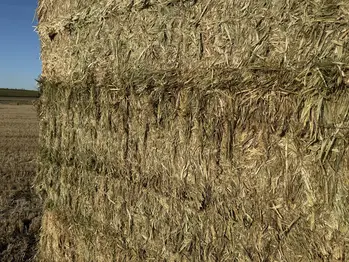 A good stack of wallaby oaten hay cured over 17 days in cool conditions showing soft texture & good colour, a good aroma & even moisture content averaging 11.6%
