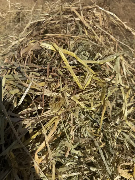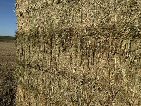 Oaten hay retaining colour despite a challenging curing process over a month, fresh smelling & well shedded showing even moisture content averaging 11%